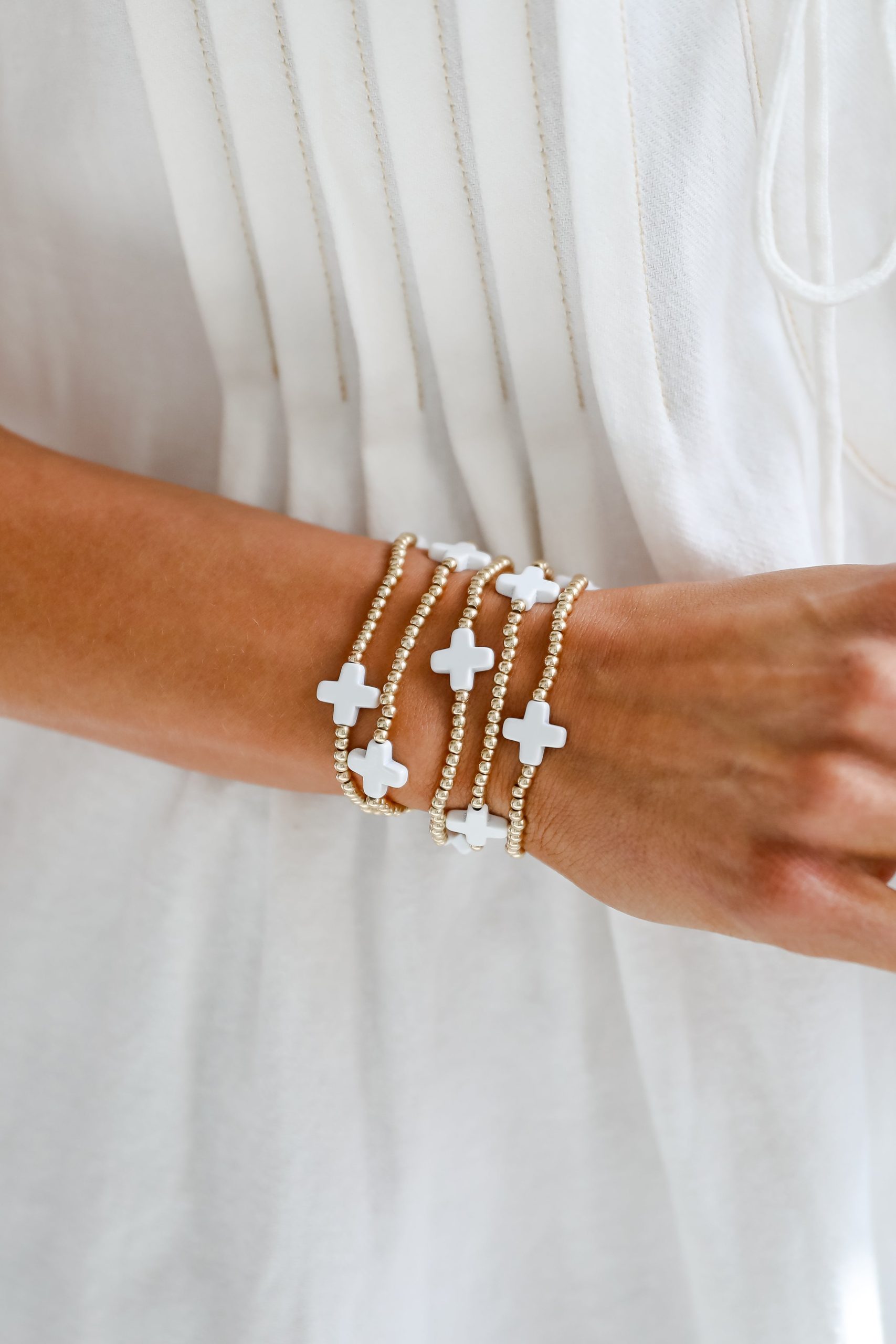 The Alanna White Beaded Bracelet Set is a piece that’ll pair perfectly with casual looks, elegant ensembles, and everything in between! This set of five bracelets is made of gold beads with white “X” charms. Wear them all together, or separately, either way you’ll love them! Set of 5 “X” Charms BeadedOne Size | Diameter 2.5”